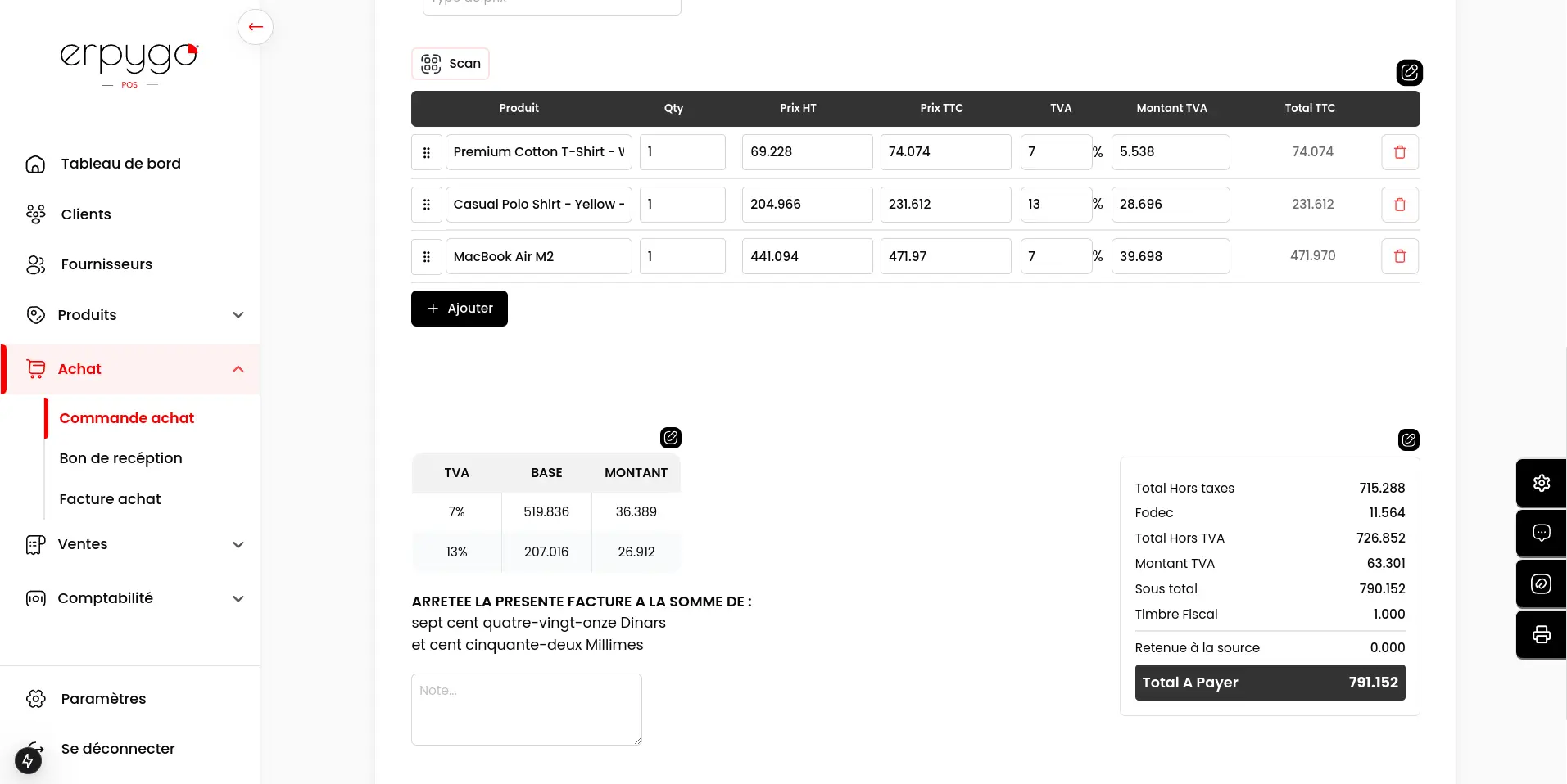 Erpygo is a robust business management system built with Next.js and Django. It includes advanced VAT calculations, multi-user role management, product and inventory control, financial reporting, and automated tax processing, streamlining business operations efficiently.
