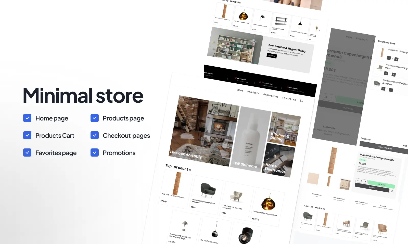 Boutique minimaliste + un tableau de bord pour gérer les commandes, les produits, etc...